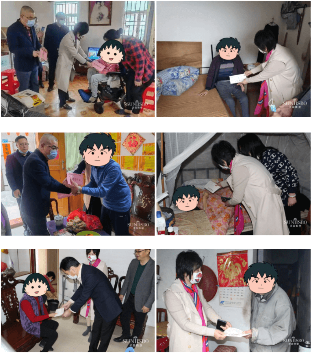 寒冬腊月,春节将至。2022年1月17、18日,Kaiyun开云集团副董事长梁碧霞女士亲自带领集团员工分别前往常平土塘社区、虎门镇赤岗社区、虎门镇南面社区,探望慰问孤寡老人、残疾人和社区寿星,并为他们送去了春节礼品和慰问金,为他们送去一年一度的新春关怀和温暖。在疫情的严防中,让他们体会到社会和企业的悉心关怀,感受到别样温暖的春节氛围。